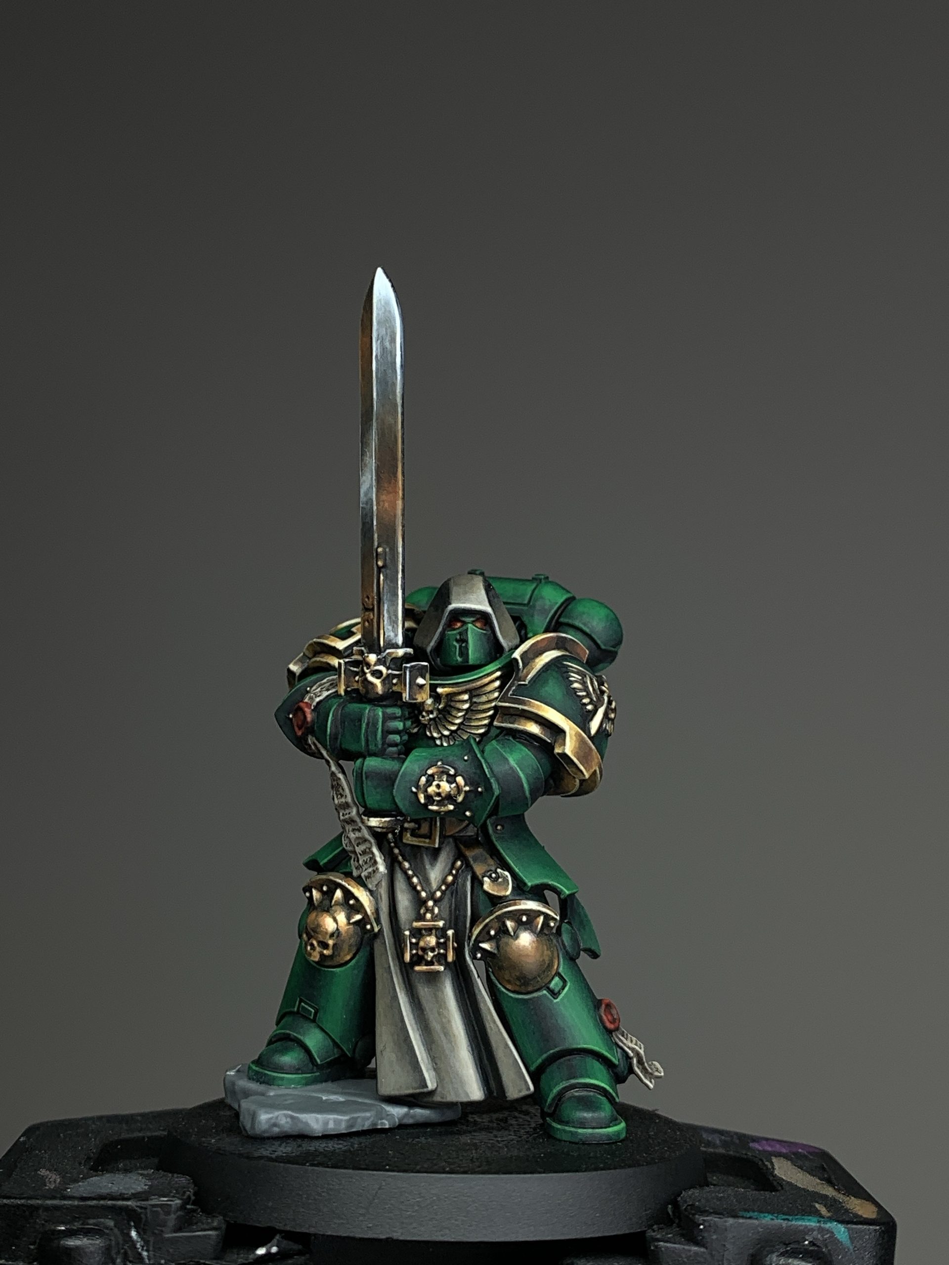 A short tutorial on achieving the green armour from Brushlicking’s popular intagram post of the Dark Angel Champion. The guide follows along painting a different model to the original, but using the same colours and methods. There is also a bonus tutorial for the